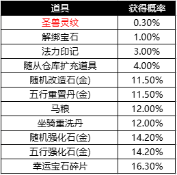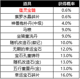 2. 商城上架【金秋礼包】,开启可获得各种道具与代币 -【金穗令】,概率公示如下:
