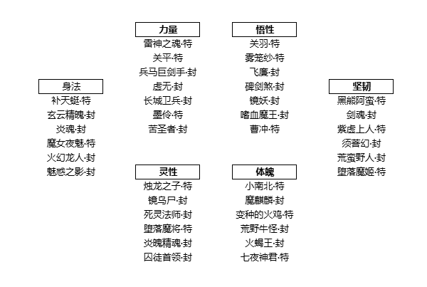 ※ 七夜神君·特【攻】:(近程双攻型):10品特殊随从,参考天赋值为力量19240、悟性19240、体魄8965、坚韧8726、身法12652、灵性8726,实际属性以生成时为准;