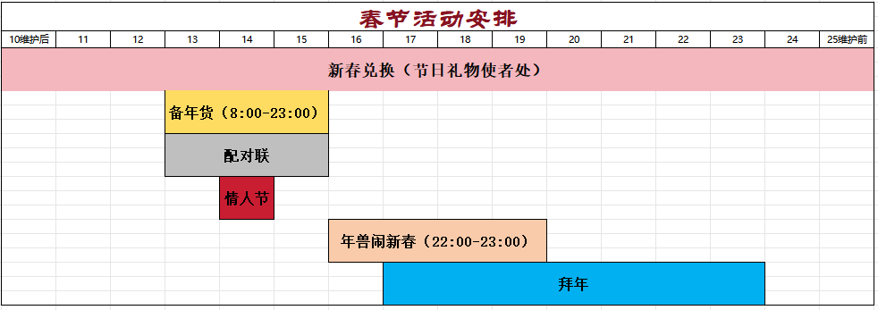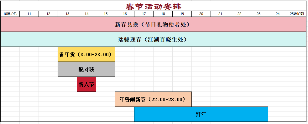 活动排期(建议大家截图保存对照以免错过活动时间哦)