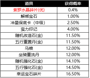4. 商城上架【新春礼包】,开启可获得各种道具与代币 -【新春令】,概率公示如下: